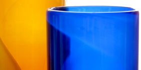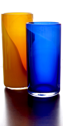 First Light Cylinder opaque and transparent blue hand blown glass 22 x 10 cm