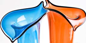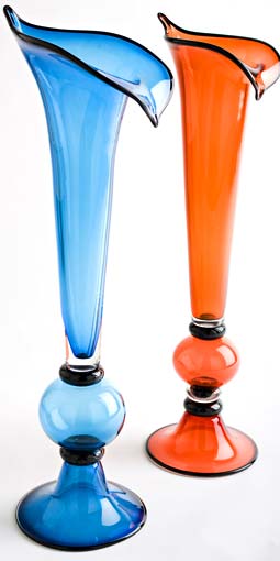 Blue Featherless blown, sculpted and assembled glass 73 x 22 x 21 cm Apricot Featherless blown, sculpted and assembled glass 71 x 22 x 20 cm